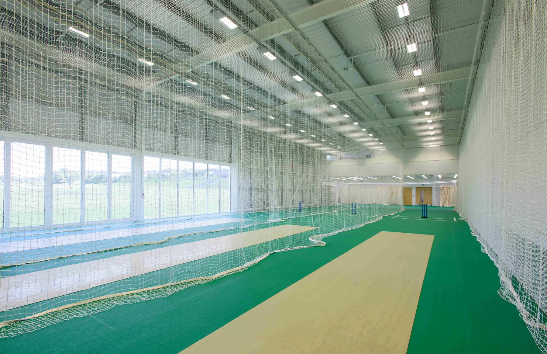 The new indoor cricket school was built to ECB specifications to serve both Academy students, and the wider community. The ground floor includes 3 bays of indoor cricket nets, with associated changing rooms and facilities, whilst on the first floor, there are communal function spaces, a gym and offices.
