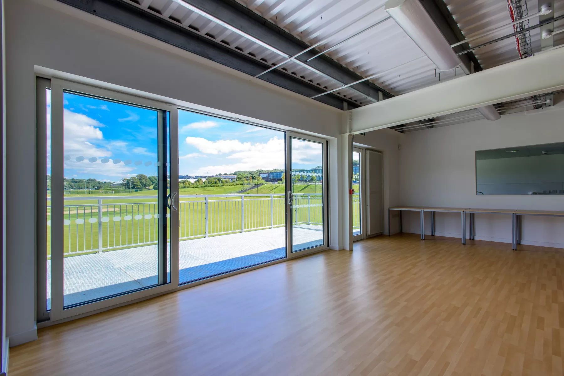 The building structure comprises a steel portal framed solution, with partial first-floor steel framing and a lightweight roof. To enable the run-up area to be unrestricted by columns, long span castellated beams were used to span the area, with the beams sized to restrict dynamic effects arising from the first-floor gym and exercise area. To the rear of the building, a large communal balcony terrace was added, ensuring unrestricted views across the adjoining cricket pitch.