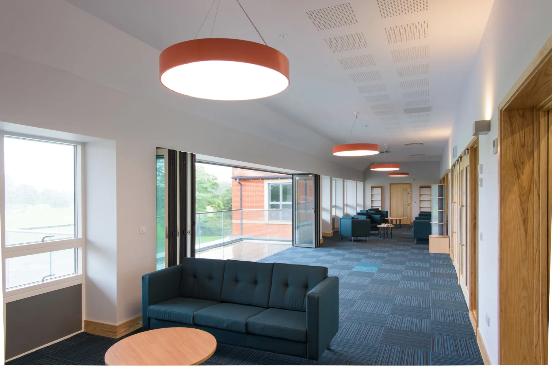 Located within the heart of the historic campus the three storey building was successfully completed in Summer 2015 and combines a mix of contemporary design with traditional materials. This classroom/library building sits within the Grade II* listed campus of Christ’s Hospital School and was the winning scheme from a design lead competition to select Architects.